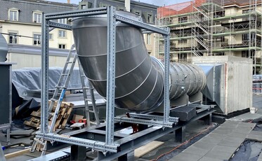 Lüftungs-Klimaanlagen für Gewerbe-/Ladenflächen, Büroräume, Nebenräume, Technikräume und Wohnungen, Gesamtluftmenge 30000m³/h Entrauchungsanlage MRWA der Gewerbe-/Ladenflächen Luftmenge 74000m³/h
