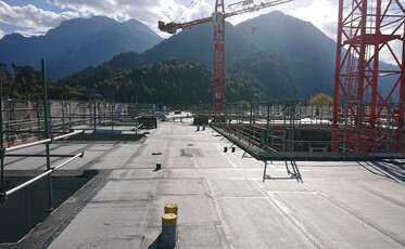 Neubau von 58 Wohnungen und 1 Hotel. 38 Wärmepumpen auf dem Dach