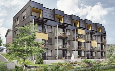 Installation der kontrollierten Wohnungslüftung in einem zertifiziertem Minergie-A-Haus aus Holz. Das Mehrfamilienhaus erlaubt umweltbewussten Mieter/Innen, von modernster Klimatechnik zu profitieren und einen Beitrag zum Klimaschutz zu leisten. Der hochwertige Bau bietet höchsten Wohnkomfort und nimmt Rücksicht auf die Bedürfnisse der verschiedenen Altersgruppen.
