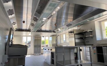 Installation der kontrollierte Be- und Entlüftung der Küche im Erdgeschoss über eine zentrale Luftaufbereitung. Montage der kontrollierten Lüftung der Garderoben und Nebenräume, Einbau der Abluftanlagen Nasszellen, Nebenräume, Nachströmung Heizzentrale, Entlüftung des Hyraulikraum- und Schnitzellager, sowie die Notlüftung in der Kältezentrale.